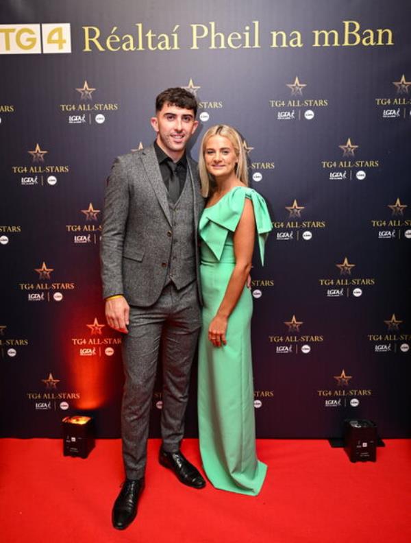 利默里克女子足球运动员Róisín安布罗斯与利默里克投球手和新加冕的2023年度最佳投球手亚伦·吉兰。