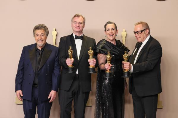 美国好莱坞:周日,在好莱坞年度最盛大的奥斯卡颁奖典礼上,《奥本海默》包揽了包括最佳影片和最佳导演在内的七项大奖,为导演克里斯托弗·诺兰的胜利之年画上了圆满的一笔。