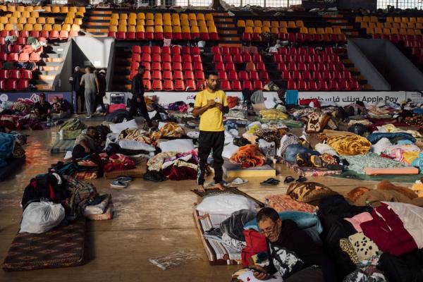 “你有两件夹克吗?”我们是来登记入住的。”这三名巴勒斯坦人羞怯地走上前来,他们的面容憔悴,穿着人字拖。10月12日,星期四,他们经过千辛万苦才抵达拉马拉。他们来自加沙,就像其他在市中心体育中心的健身房和咖啡馆之间徘徊的老人一样,他们的眼睛要么盯着天空,要么盯着手机。有时,他们中的一个大喊大叫,另外两个亲切地手拉着手。