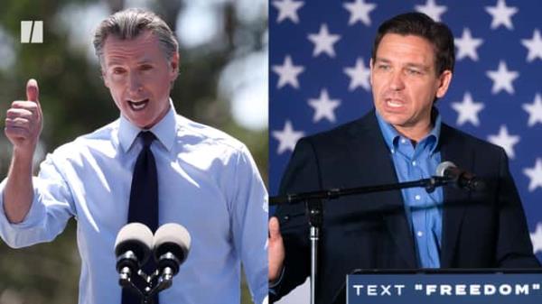 周六,加利福尼亚州州长加文·纽森(民主党)抨击佛罗里达州州长罗恩·德桑蒂斯(共和党),称“难怪特朗普在打他的屁股”,两人正在就即将举行的电视辩论的条件进行争论。
