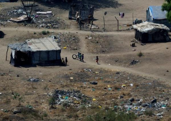 2023年2月4日,南苏丹朱巴,孩子们在街上玩耍。法新社