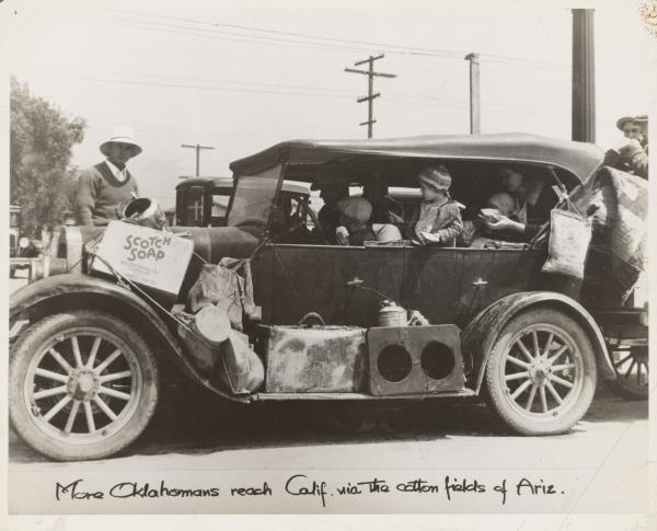 多年的严重干旱毁坏了数百万英亩的农田。据美国国会图书馆(Library of Congress)称,许多移民是被采摘作物的招聘广告吸引来的。尽管这些尘暴区移民出生在美国,但他们仍然被加州的许多人视为入侵者,他们认为他们在与长期居住在这里的人竞争工作,而在大萧条时期,工作是很难找到的。其他人则认为他们是依赖政府救济的寄生虫。