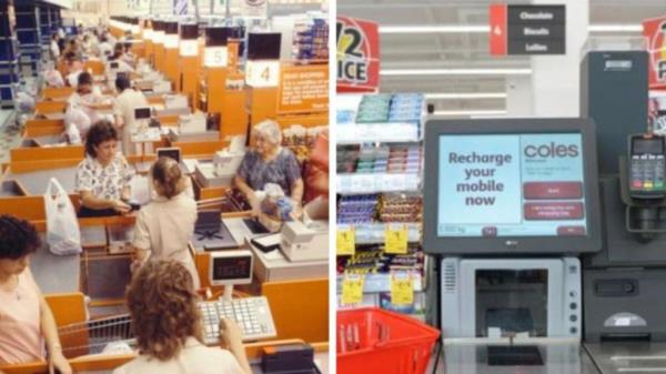 一张上世纪90年代初科尔斯超市的照片引发了一场关于澳大利亚自助购物现状的激烈辩论。