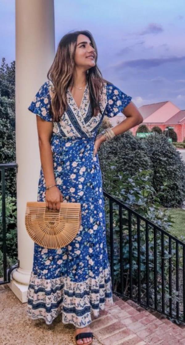一款波西米亚风格的及地长裙,有S-3X号和23种颜色、图案和款式。