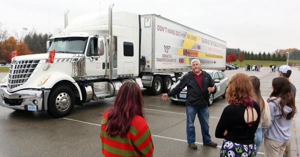 泰勒是众多学生中的一员,他们参加了由弗吉尼亚理工学院交通学院的工作人员举办的互动活动,向新司机或即将成为司机的人传授一些在拖拉机拖车附近使用的关键基础知识。