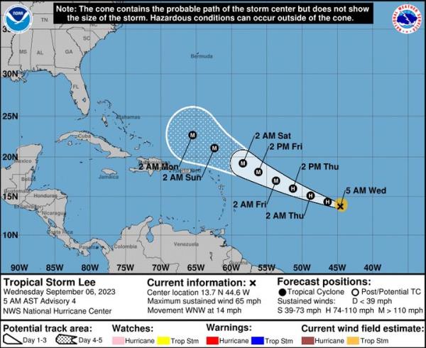圣胡安,波多黎各(美联社)——热带风暴“李”于周三横扫大西洋的开阔水域,预计在接近加勒比海时将很快变成飓风。