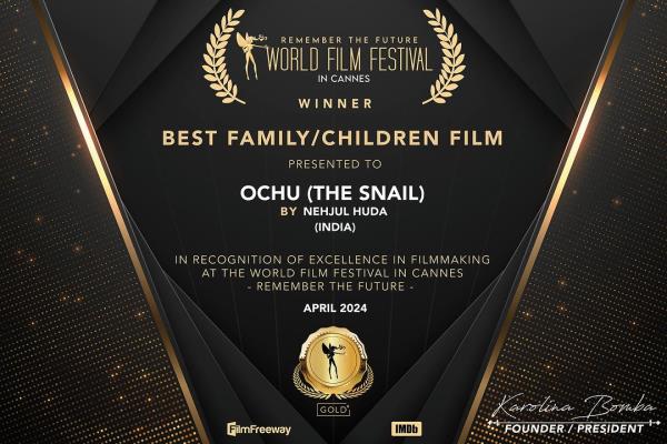 5月28日星期二,Nehjul的电影《蜗牛》(The Snail)在戛纳世界电影节(World film Festival)上获得了4月份的“最佳家庭/儿童电影”奖。戛纳世界电影节是每月和每年一次的国际电影人竞赛。