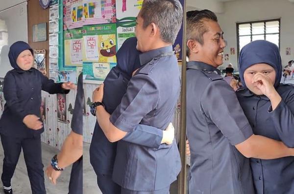 吉隆坡:一个健康催人泪下的视频在网上疯传,一个女儿打扮成像她父亲一样的私人司机,参加一个“职业”主题会议,女孩在分享她为父亲感到骄傲后,跑去拥抱她的父亲。