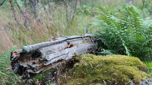 一只小小的、亮蓝色的六眼生物在一根倒下的树枝上的腐烂物中蠕动,掉进了日本研究人员设置的漏斗陷阱。