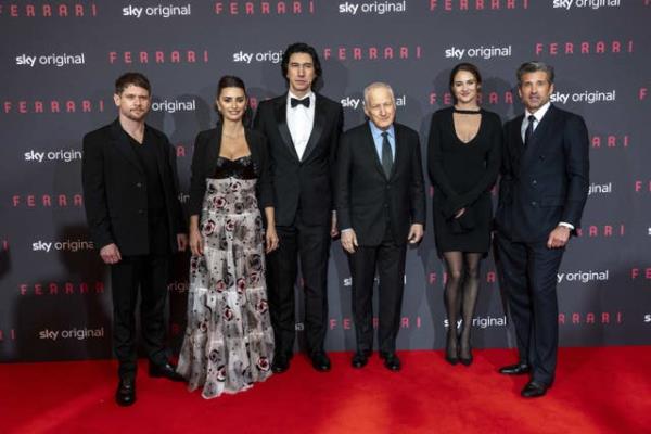 这位美国演员在这部关于恩佐·法拉利的传记片中饰演意大利赛车手皮耶罗·塔鲁菲(由德莱弗饰演),与佩内洛普·克鲁兹、谢琳·伍德利和杰克·奥康奈尔一起出演,他们都在周一的莱斯特广场出席了电影的首映式。
