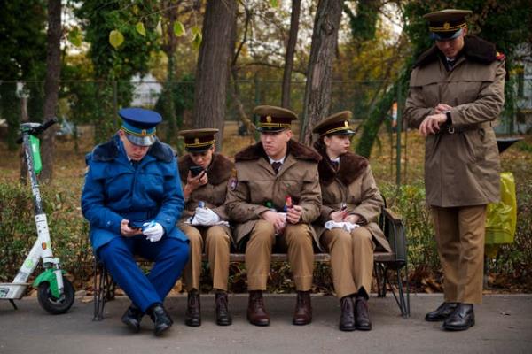 在布加勒斯特凯旋门举行的一年一度的游行聚集了数千名士兵,数十架战斗机和直升机从头顶飞过。许多观众挥舞着罗马尼亚红、黄、蓝三色旗。