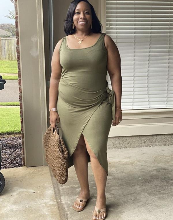 这是完美的!!它是休闲的,但可以打扮。我穿两英寸坡跟鞋的时候裙子掉在地上了。它不会粘在身上,但会很好地覆盖你的曲线。我丈夫非常喜欢它,所以我订购了四种不同颜色的小一号,这样我就可以搭配平底鞋穿了。”——蒂亚·布莱克威尔,亚马逊售价33.99美元以上