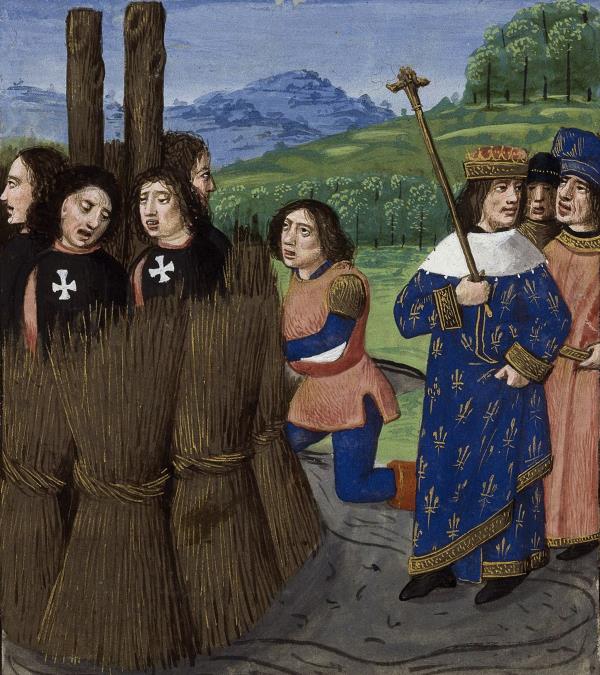 1310年5月,森斯大主教,他的兄弟恰好是国王最亲密的助手之一,下令将54名放弃信仰的圣殿骑士作为复发的异教徒烧死在火刑柱上。不久之后,另外14名圣殿骑士也遭遇了同样的命运。一名死去的圣殿骑士甚至被从坟墓中拉出来,以便焚烧他的骨头。