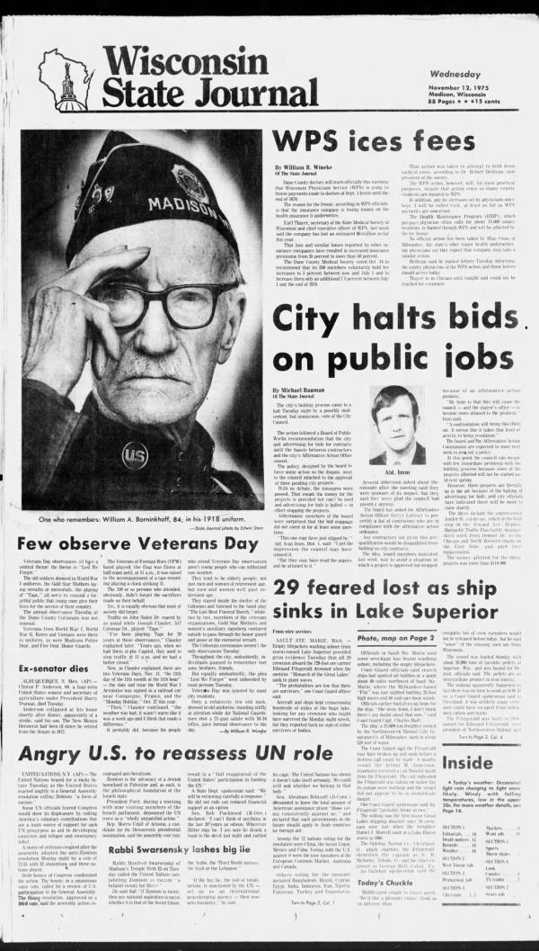 莱特富特今年早些时候在多伦多去世,享年84岁,他也与威斯康星州建立了联系,在那里,菲茨被绘画、博物馆展览和纪念馆赞颂。因为他的歌,“Gitche Gumee”不再是外国的,我们知道了11月的大风,这艘船在威斯康星州的一家磨坊装上了“二万六千吨的铁矿石”,莱特富特写道。