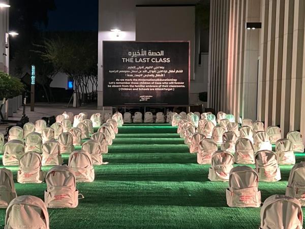 EAA基金会与Musheireb合作,展出了一件发人深省的装置作品“最后一堂课”。该装置位于Musheireb市中心,由110个袋子组成,代表从战争开始到国际教育日的每一天,象征着全球迫切需要关注危机地区的教育。