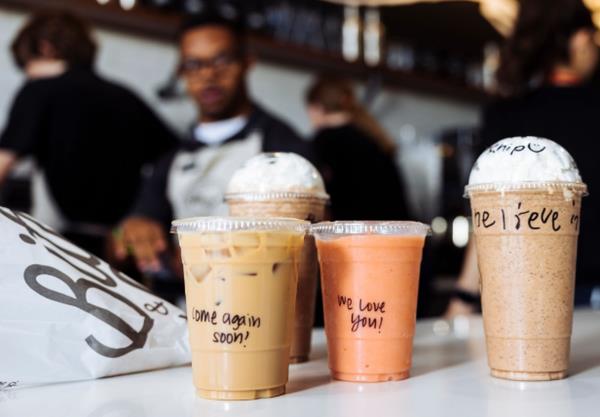 该连锁店提供各种口味的冷热咖啡、冰沙和其他饮料。
