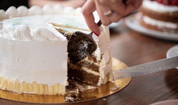 餐厅负责在餐桌上切割和端上甜点,要么不额外收费,只收取象征性的费用,要么根据客人的数量按比例收取费用。