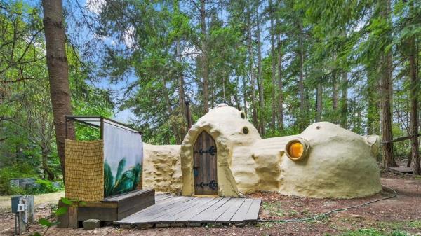 位于太平洋西北部森林中的一座海滨别墅正在出售,这是燧石族(Flintstone)家族或《星球大战》(Star Wars)系列电影中的尤达(Yoda)可以居住的地方。
