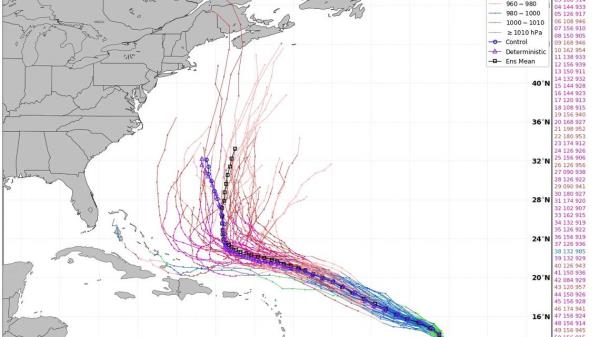 不过,要知道李是否会造成破坏还为时过早。许多意大利面模型——一种显示可能的风暴路径的数据可视化方法——显示风暴在大西洋向北弯曲,远离海岸。这些线靠得越近,对轨道的信心就越高。目前的模型显示,飓风“李”向西北移动,使百慕大比美国面临更大的风险。