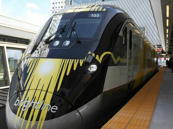 在迈阿密和佛罗里达州西棕榈滩之间的首次旅行中,一列亮线列车。2018年。本周,白宫宣布为西部亮线项目提供30亿美元资金,这是一条连接拉斯维加斯和南加州的高铁线路。