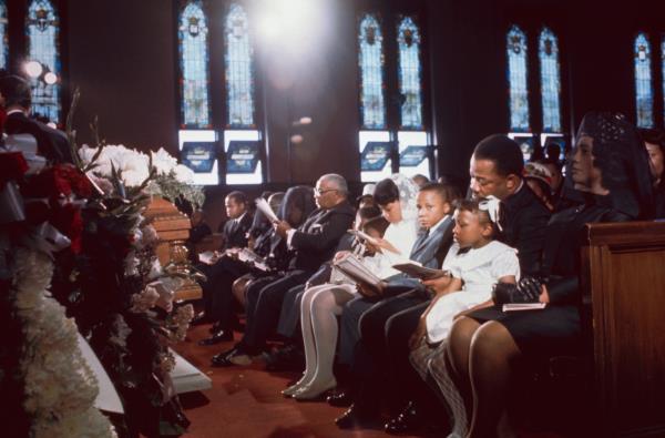 马丁·路德·金的逝世在安葬他的殡仪馆举行了追悼会,并在乔治亚州亚特兰大举行了两场葬礼。第一次是在金的精神家园埃比尼泽浸信会为一群家人和朋友举行的,金和他的父亲都曾在那里担任牧师。在颁奖典礼上,他的妻子科蕾塔·斯科特·金(Coretta Scott King)在一名记者面前显得“泪流满面”。她要求教堂播放一段“the Drum Major Instinct”的录音,这是她丈夫当年早些时候发表的一篇布道。他在信中说,他不想要冗长的葬礼或悼词,他希望人们能提到他为服务他人献出了自己的生命。