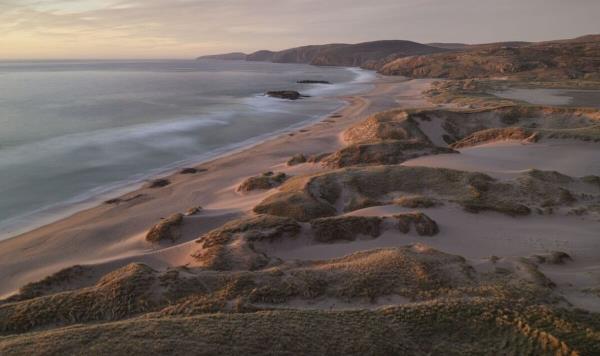 虽然海滩本身很漂亮,但它周围几乎一半的沼泽地都被毯子沼泽覆盖着——这是一种由于降雨而形成的大面积平坦的泥炭沼泽。这里也有山丘、湖泊和沙丘。
