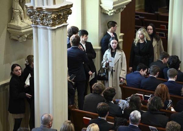 底特律郊区格罗斯波因特农场的哀悼者涌入圣保罗湖天主教堂,纪念在周一袭击中丧生的三名学生之一的大二学生布莱恩弗雷泽。