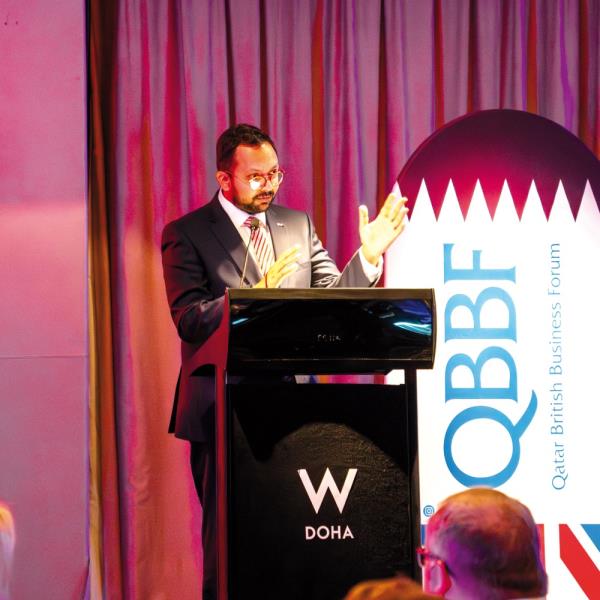 卡塔尔英国商业论坛主席Emad Turkmen MBE对新任大使Neerav Patel表示热烈欢迎。