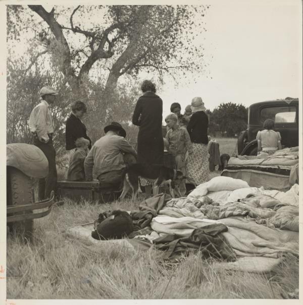 那些进入加州的人经常发现自己不断地从一个农场搬到另一个农场,寻找工作。根据美国国家档案馆的资料,在联邦政府开始建立移民营地以容纳他们之前,他们住在农业种植者提供的简陋住所或蹲在城镇郊区的“胡佛村”棚户区。