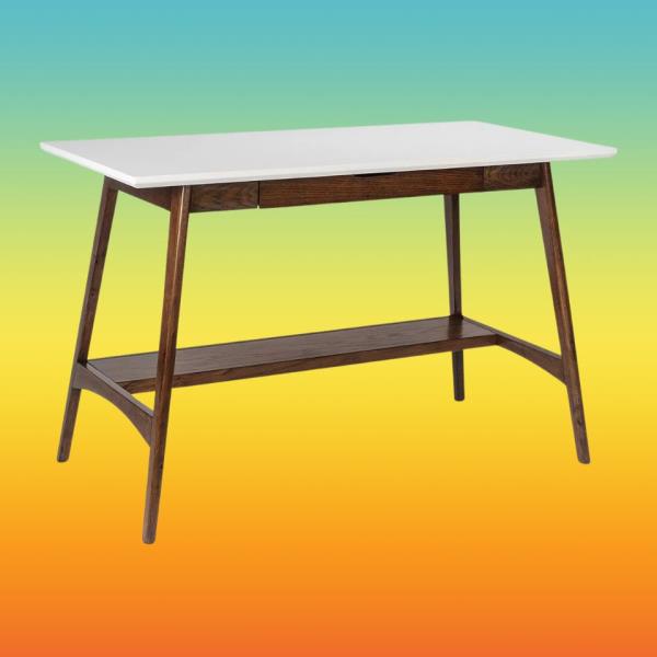 与它的白色顶部形成了美丽的对比,给人一种精致、轻盈的感觉。另外,开放式的下层架子和书桌抽屉给你足够的空间来存放充电器、笔、书和其他在家工作的用品。最引人注目的是什么?你可以以比doppelg?nger便宜1000多美元的价格买到它:梅西百货298.88美元(原价399美元),All Modern 320美元(原价380美元)